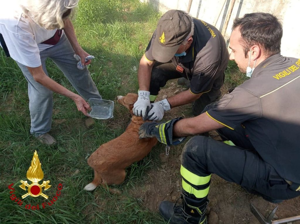 Asti: i vigili del fuoco salvano un cagnolino incastrato in un canale dell'acquedotto