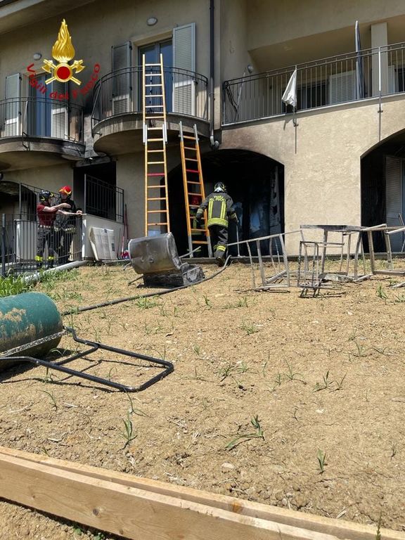 L'intervento poco fa. L'uomo è stato trovato a terra privo di sensi dai vigili del fuoco, che oltre a spegnere l'incendio hanno prestato i primi soccorsi. È stato poi elitrasportato a Torino