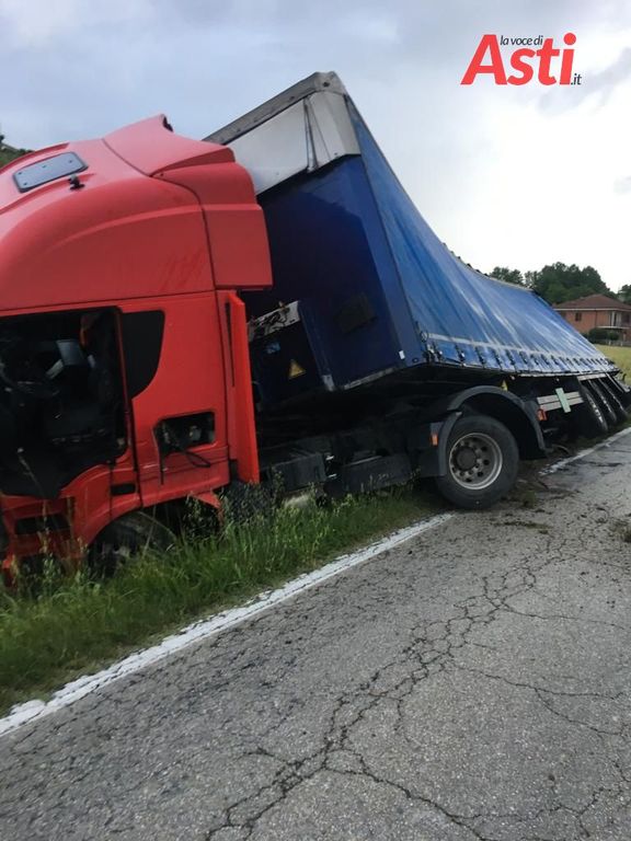 Ancora una volta, per cause da accertare, questa mattina un grosso camion è finito fuori strada tra San Damiano e Canale.