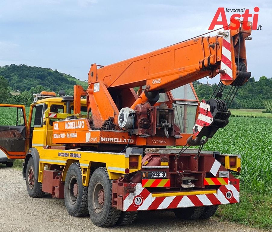 Camion fuori strada tra San Damiano e Canale. Due gru e un trattore per rialzarlo [FOTO]
