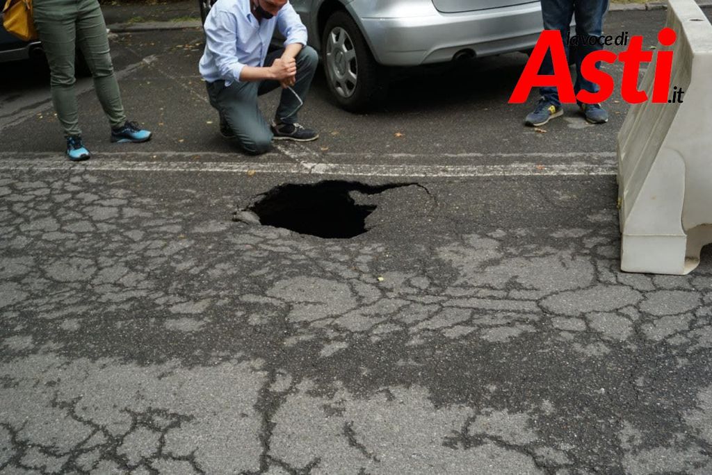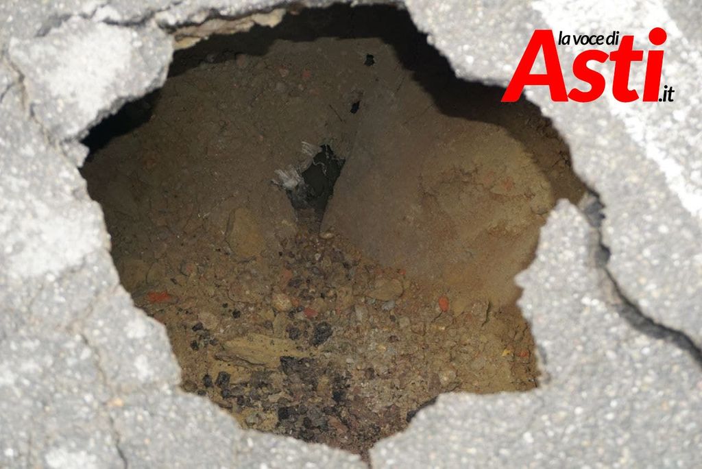 Un foro, non particolarmente grande a livello stradale, che in realtà rivela un ben più ampio cedimento al di sotto dell’asfalto. Sul posto stanno attualmente intervenendo i tecnici dell'assessorato ai Lavori Pubblici e la strada resta percorribile dalle auto sulla sola corsia di sinistra, gli autobus di linea invece sono stati deviati su altro percorso.