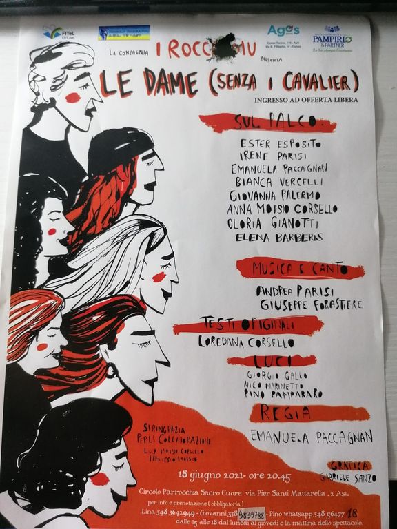 La compagnia teatrale "I Roccaroiu" si esibiranno il 18 giugno dalle 20.45 al Circolo Parrocchia Sacro Cuore di Asti con lo spettacolo "Le dame (senza i cavalier)".