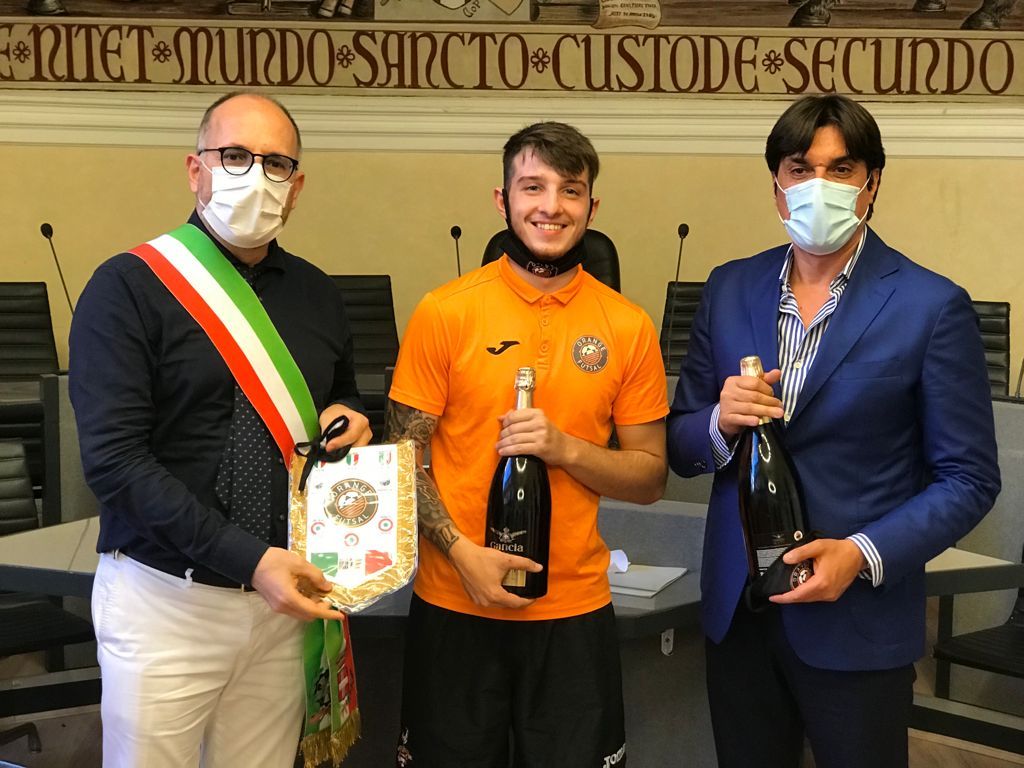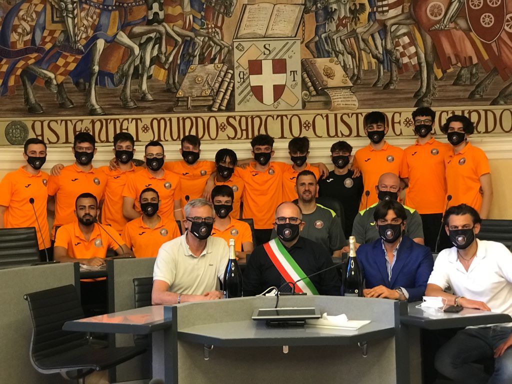 Nel tardo pomeriggio di ieri, l’under 19 dell’Orange Futsal Asti è stata ricevuta nella sala consigliare del Comune di Asti dal sindaco Maurizio Rasero e dall’assessore allo Sport Mario Bovino, che hanno voluto ringraziare i ragazzi Orange e la società di Claudio Giovannone per aver raggiunto la finale di Coppa Italia e aver portato il nome della città di Asti ai massimi livelli nazionali. Presente tutta la squadra, capitanata dalll’Mvp Kevin Rivella, accompagnata dal presidente Pascolati, dal direttore Caccialupi e da Bruno Scavino, main sponsor della società.