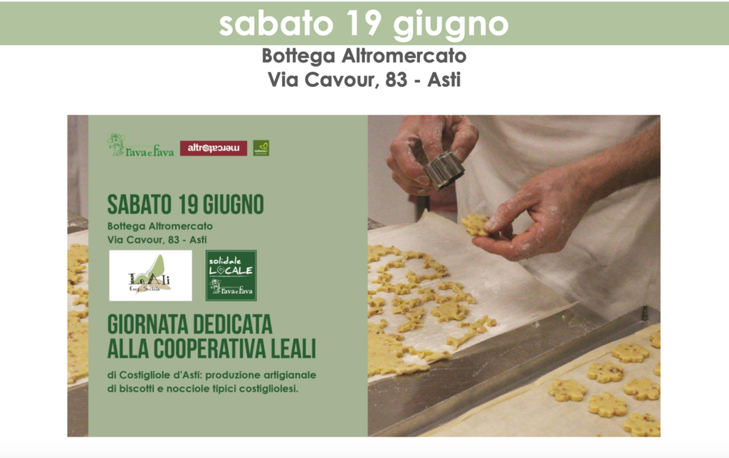 Sabato 19 giugno per tutta la giornata alla Bottega di via Cavour 83 saranno ospiti per presentare tutta la loro linea di biscotti artigianali con nocciole prodotte sulle colline costigliolesi da questa cooperativa.