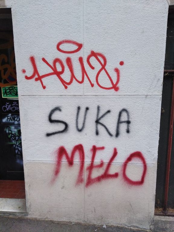Passi per i messaggi d’'amore' – per esempio quello che recita così: "Ti amo Martina / Riccia liscia / Per me top model / Con due bombe" – Non credo, però, rientrino nella didattica di un alunno delle elementari (per carità, non si finisce mai di imparare) parole come “Sukamelo” e “Bimbi de merd”.