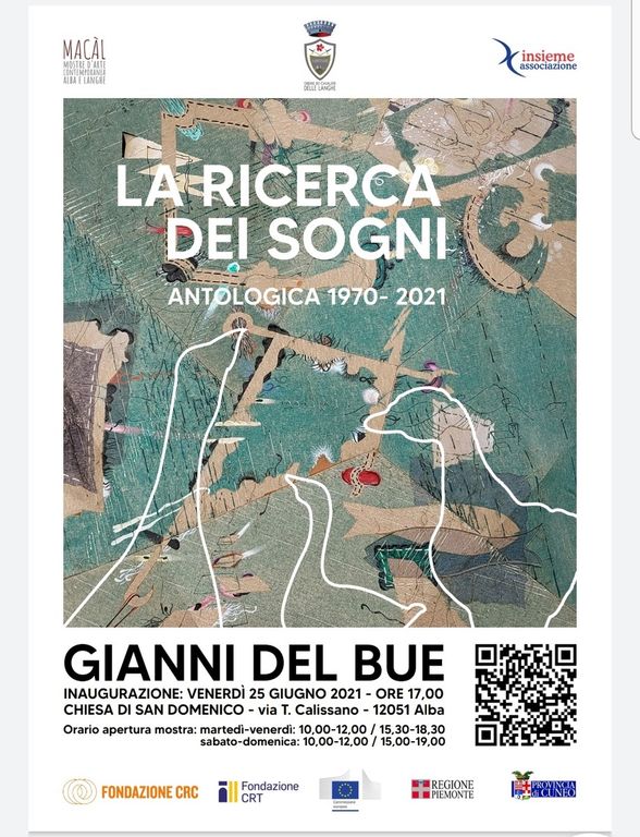 Venerdì 25 giugno alle ore 17:00, nella Chiesa di San Domenico ad Alba, si inaugura la Mostra Antologica 1970-2021 “La Ricerca dei Sogni” del maestro emiliano Gianni Del Bue, grande artista contemporaneo nonché protagonista dell’arte italiana negli ultimi cinquant’anni.
