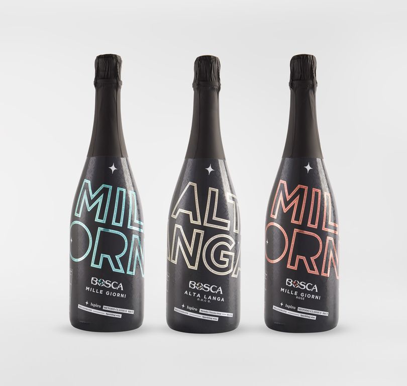 Sette spumanti inediti: Alta Langa D.O.C.G., Mille Giorni, Mille Giorni Rosé, Piemonte D.O.C., Piemonte D.O.C. Pinot Nero Rosé, Asti D.O.C.G. e Asti D.O.C.G. Secco Bosca amplia il presidio del canale Ho.Re.Ca con l’inserimento di una nuova linea composta da tre vini spumanti Metodo Classico parte della collezione “Ispiro” (Alta Langa D.O.C.G., Mille Giorni, Mille Giorni Rosé ) e da quattro vini spumanti Metodo Charmat parte della collezione “Esploro” (Piemonte D.O.C., Piemonte D.O.C. Pinot Nero Rosé, Asti D.O.C.G. e Asti D.O.C.G. Secco) delle quali evidenziamo di seguito alcuni dettagli.
