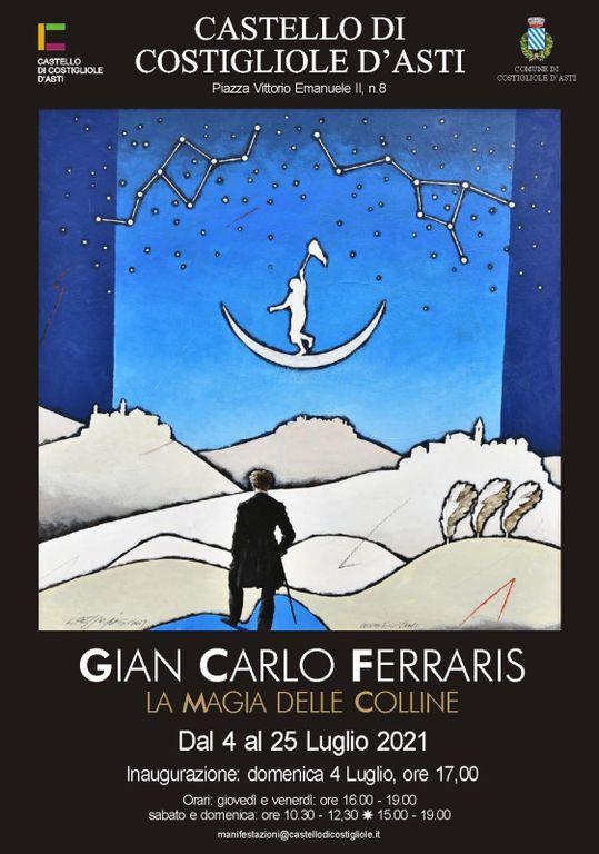 Dalle 17 di domenica 4 luglio a domenica 25 luglio, il castello di Costigliole d’Asti (piazza Vittorio Veneto II) ospiterà una nuova ed interessante mostra personale intitolata “La magia delle colline”. Ovvero l’’esposizione di opere dell’artista canellese Gian Carlo Ferraris, nome molto stimato in ambito artistico anche al di là dei confini provinciali e regionali.