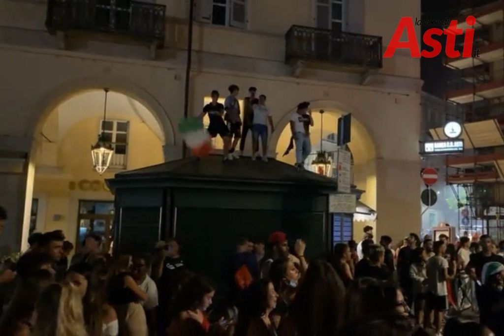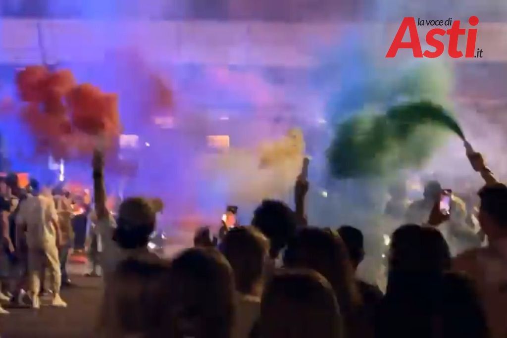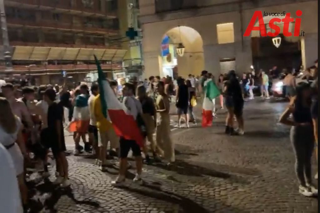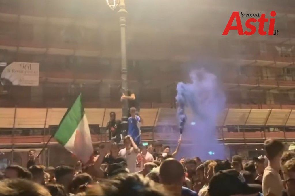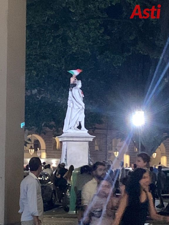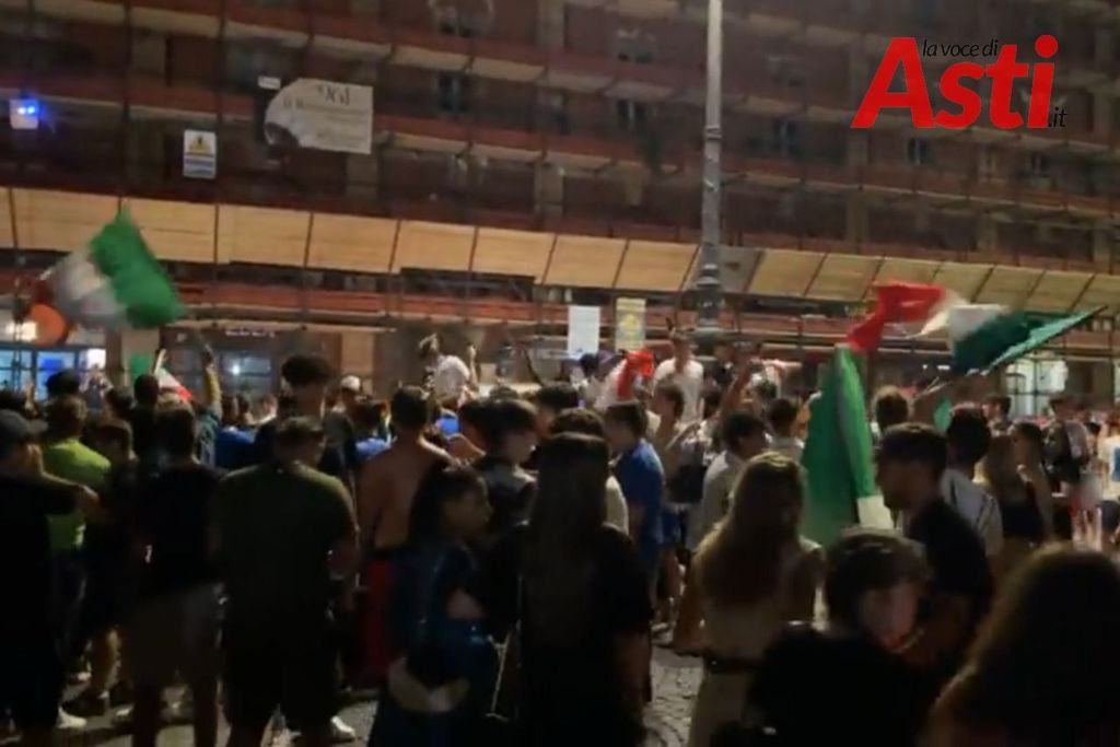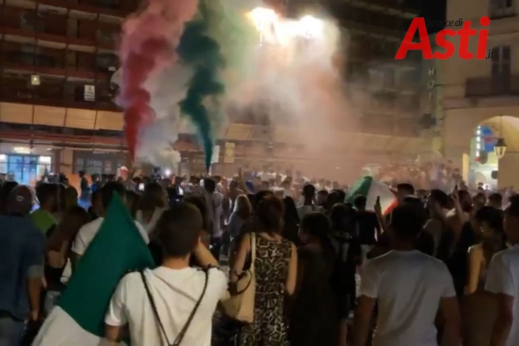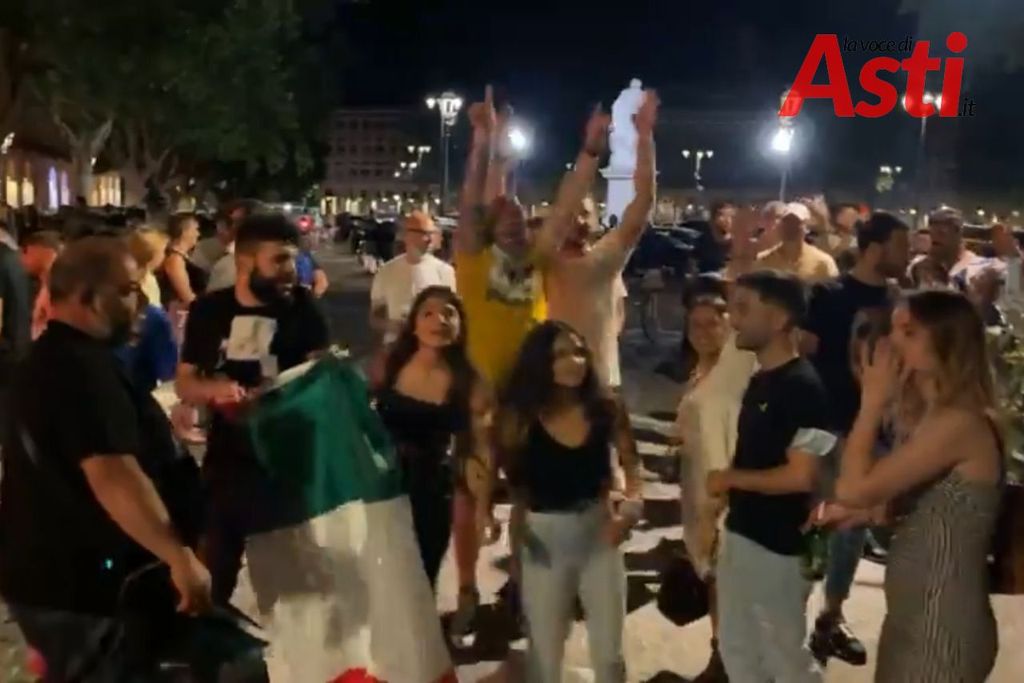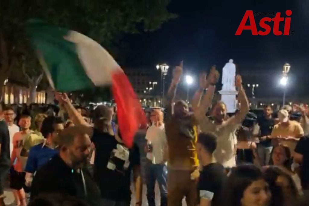 Una gioia che ha travolto anche gli astigiani che sono scesi in massa in piazza Alfieri per festeggiare. Lunga coda anche in corso Dante, fuochi di artificio, tricolore ovunque e immancabile quello sulla statua di Vittorio Alfieri.