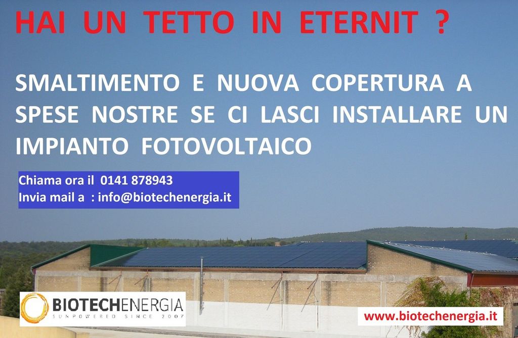 Se hai un tetto in eternit ora hai l’opportunità , grazie a Biotech Energia , di valorizzare immediatamente il tuo immobile e dire addio all’amianto senza alcuna spesa