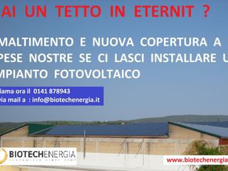 Se hai un tetto in eternit ora hai l’opportunità , grazie a Biotech Energia , di valorizzare immediatamente il tuo immobile e dire addio all’amianto senza alcuna spesa