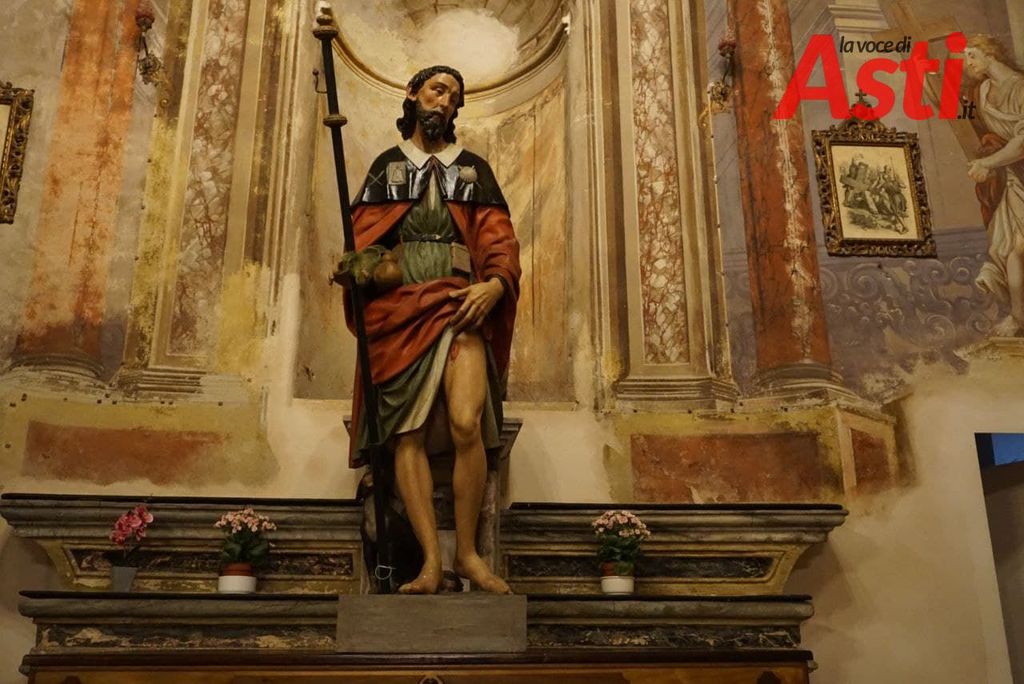 Dopo quasi dieci anni di assenza, la statua secentesca di San Rocco è tornata a casa, nella nicchia della sua chiesa di via Brofferio, finalmente dotata di un sistema di allarme.