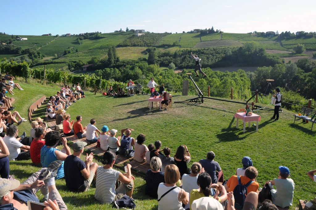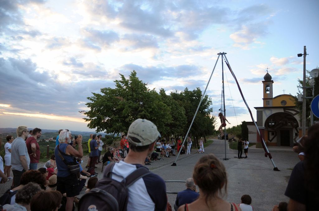 A Coazzolo la ormai tradizionale e attesa passeggiata nel sentiero della Madonna del Carmine: quest'anno un incontro di arti, discipline e paesaggio, con Milo Scotton e i suoi acrobati, danzatori e attori in “PerBacco le Masche !”. Le evoluzioni aeree degli artisti su grandi strutture montate nel paesaggio e gli interventi poetici hanno regalato un pomeriggio di incanto, camminando tra le colline.