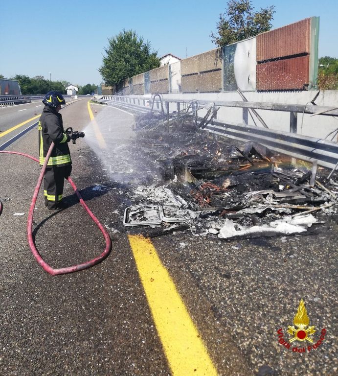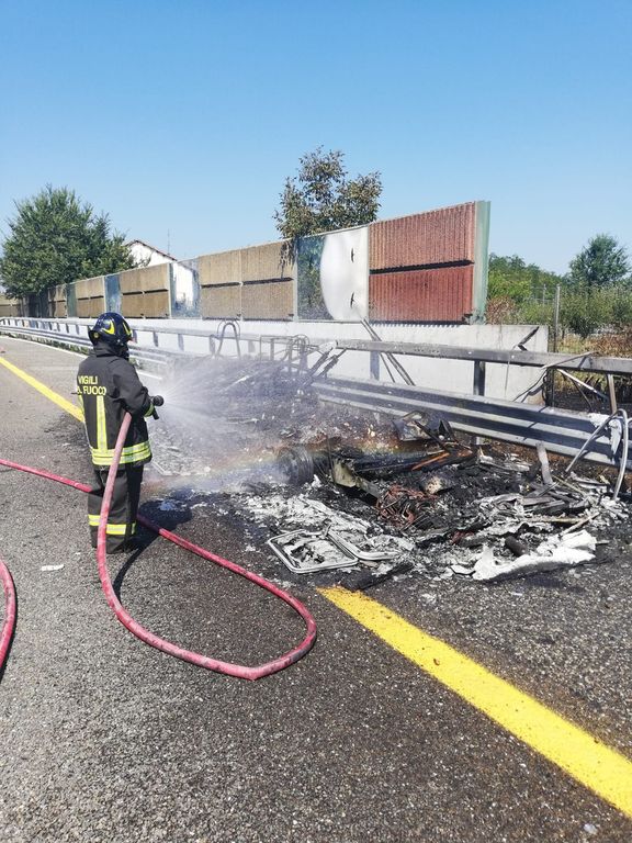 Prende fuoco un camper sulla A21. Sul posto vigili del fuoco di Asti e Alessandria