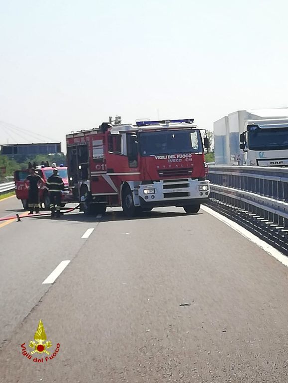 I vigili del fuoco di Asti sono alla prese con un incendio che si è verificato, per cause da stabilire, ad un camper che si trovava in viaggio sulla A21 in direzione Torino, tra Felizzano e Asti Est.