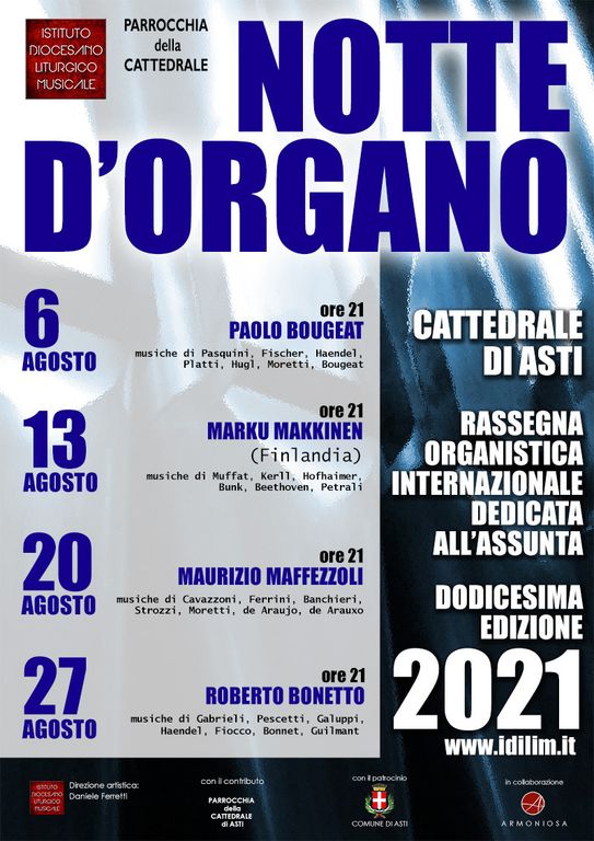 Anche quest’anno torna "Notte d'organo", il festival organistico internazionale della Cattedrale di Asti, organizzato dall'Istituto Diocesano Liturgico Musicale per l’undicesimo anno consecutivo.