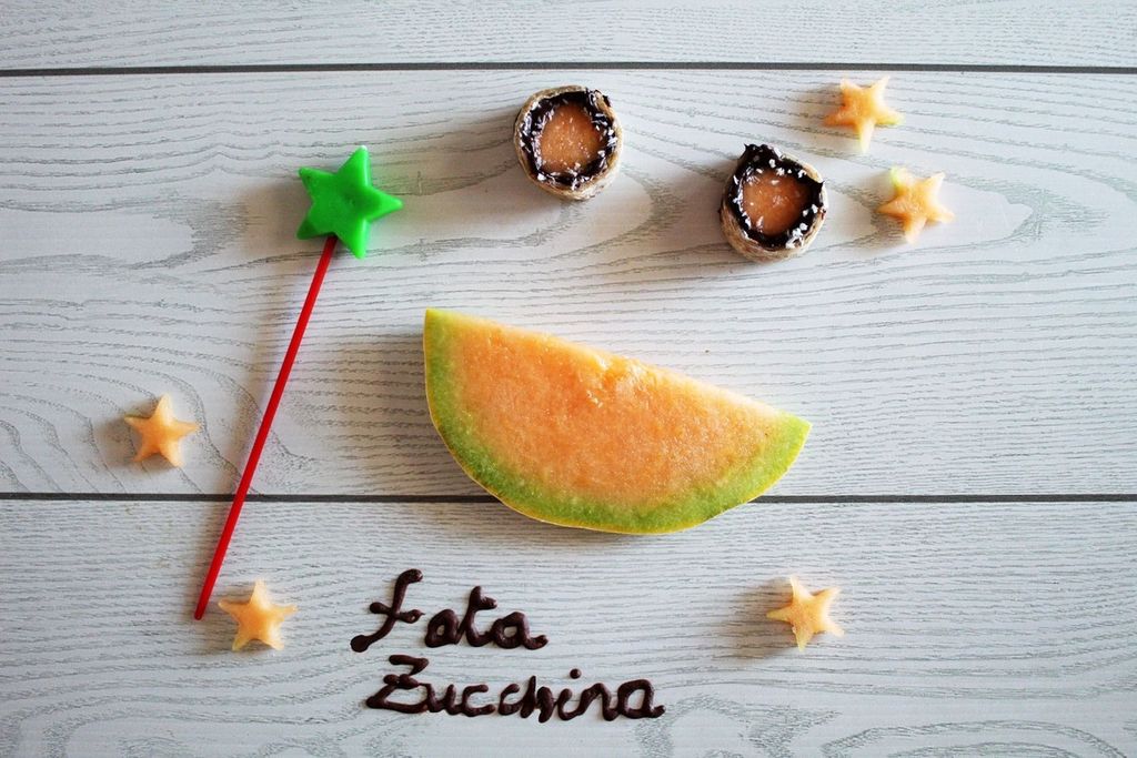 Tagliate una fetta di melone dello spessore di ca. 1,5 cm e ricavatene 8 tondini con l’ausilio di un tagliabiscotti di forma rotonda