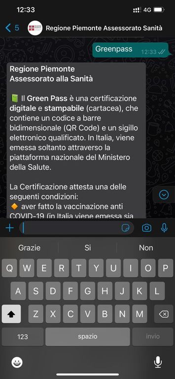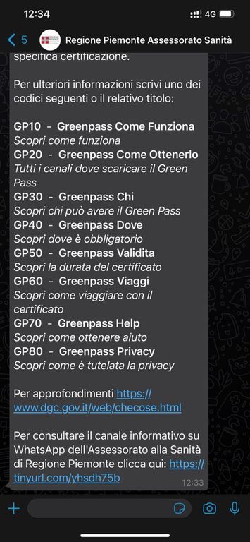 • accetta di entrare nella lista dei contatti whatsapp della Regione Piemonte;