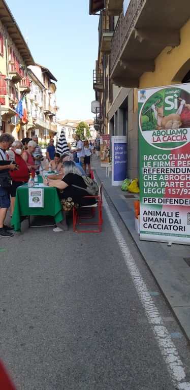 A Castelnuovo Don Bosco, ieri Ferragosto, si è tenuta una raccolta firme per richiedere il referendum abolizione caccia .