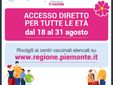 Il Piemonte, per incentivare e facilitare il più possibile le vaccinazioni e le nuove adesioni, da oggi fino al 31 agosto, consentirà l’accesso diretto a tutte le fasce d’età in alcuni degli hub del territorio piemontese.