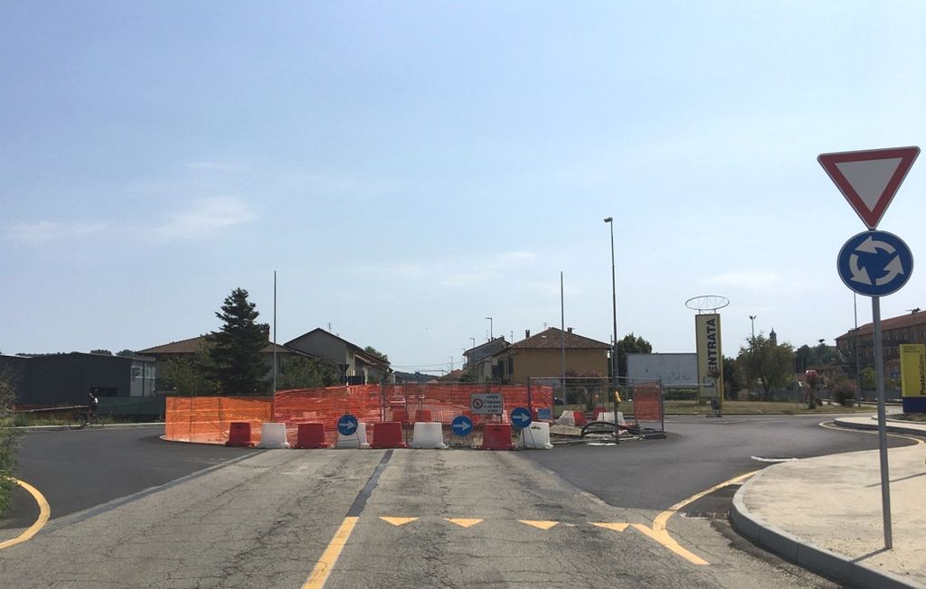 I lavori per la realizzazione della grande rotatoria (18 metri di diametro) sono già in corso e termineranno entro l'autunno. L'isola spartitraffico è collocata all'incrocio con gli ingressi dell'area commerciale ex Mercatone e della zona industriale: rendere più fluido il traffico, in entrata e in uscita dai due poli, è l'obiettivo del Comune, insieme alla necessità di rallentare la velocità (il limite dei 50 chilometri orari, nonostante l'autovelox, non da tutti viene sempre rispettato) per rendere maggiormente sicura la strada, di recente passata nuovamente sotto la competenza dell'Anas.