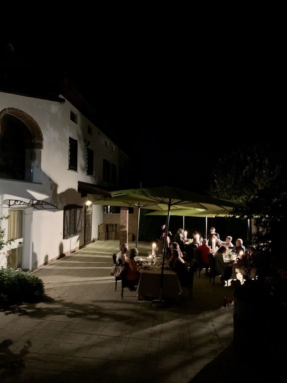 Si prosegue con la cena intorno al fuoco e sotto le stelle. Per gli ospiti un ricco menu: benvenuto con salame contadino, pane nero e burro al timo accompagnato da un calice di bollicine; lingua al verde, involtini di coppa con caprino in agro di verdure, bis di torte campagnole, peperone rosso ripieno; crespelle zucchine e maggiorana e assaggio di plin della casa al ragù; scaloppina di filetto di maiale ai porcini, con verdure; torta di nocciole con Moscato, caffè e digestivo. Saranno serviti i vini della Cantina di Nizza prodotti con le uve de I Salici Ridenti: Nèi Piemonte Doc Spumante Brut Magnum, Barbera d’Asti Le Pole, Labrì Chardonnay, Magister Barbera d’Asti Superiore, Orofiamma Moscato d’Asti.