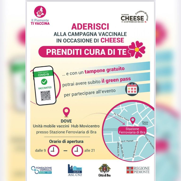 A Bra l’iniziativa è realizzata in collaborazione con il Comune, l’Asl CN2 e la Fondazione Ospedale Alba-Bra e Slow Food. Coloro che non hanno ancora aderito alla campagna vaccinale potranno ricevere la prima dose di vaccino dalle ore 9 alle ore 21 recandosi presso l’Unità mobile posizionata alla Stazione ferroviaria di Bra. Più di 20 le persone già vaccinate oggi pomeriggio grazie all’iniziativa, a poche ore dal suo avvio.