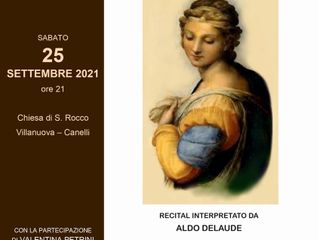 Sabato 25 settembre alle 21, nella suggestiva cornice della storica Chiesa di San Rocco, a Villanuova, l’attore e regista Aldo Delaude metterà in scena il recital dedicato a Dante 'Amor sì dolce mi fa sentire', accompagnato dalle sapienti note del flauto di Simona Scarrone.