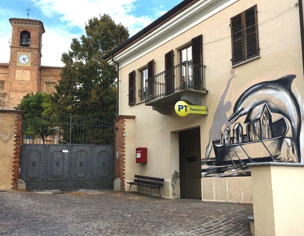 Cuba era al lavoro da venerdì pomeriggio, coadiuvato da due rifugiati, dopo aver visitato il Museo Paleontologico di Asti che ospita l'esemplare fossile ritrovato, nel 1979, oltre la Peschiera di Settime. A vedere il murales in bianco e nero sono venuti anche dai paesi vicini: curiosi, pensosi, affascinati. Un'anziana signora ha guardato prima il delfino ("Quasi parla") e poi il balcone dell'edificio postale che ospita anche la Società agricola operaia e la Pro Loco: "Tanto tempo fa c'era la scuola, ho fatto le elementari, sa? Adesso sono vedova, ma quando passerò di qui sarò un po' meno sola".
