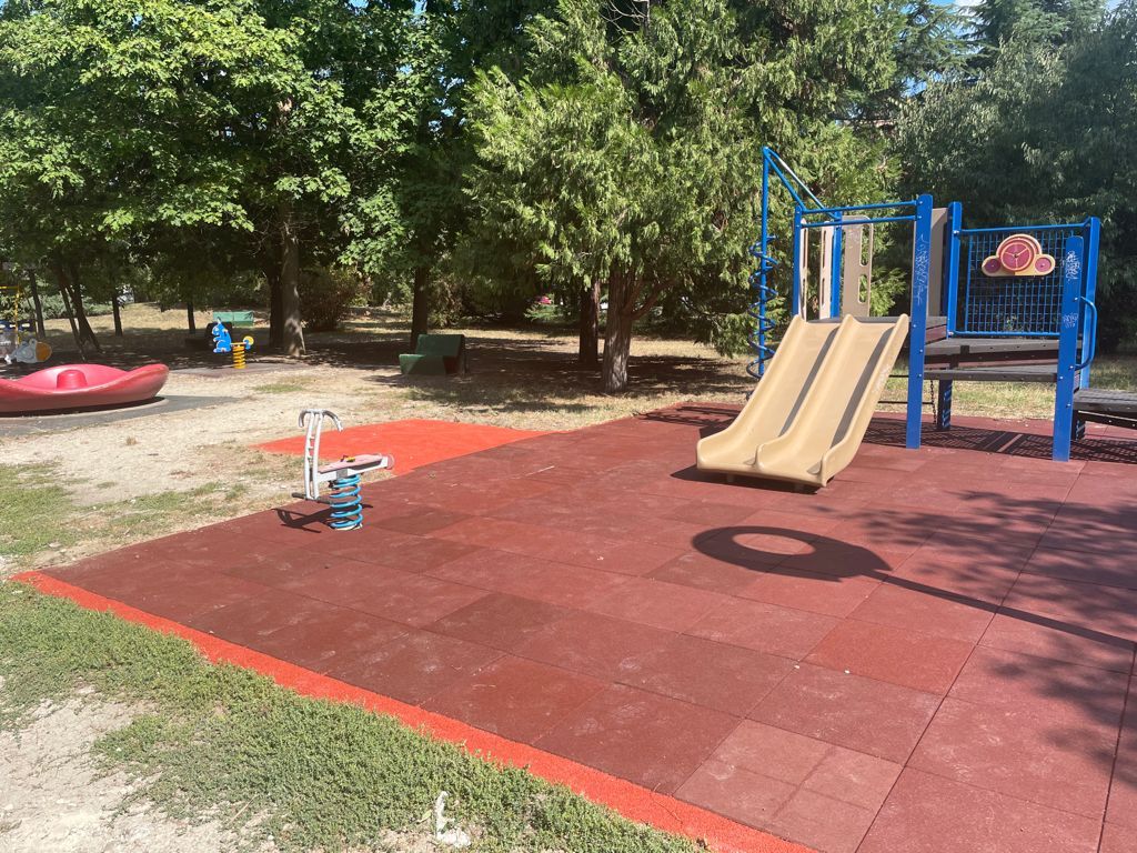 In questi giorni sono stati eseguiti alcuni lavori di manutenzione, come il rifacimento di tutta la pavimentazione antitrauma in prossimità dello scivolo, e sono stati sostituiti alcuni giochini a molla che erano usurati dal tempo. Adesso ci sono dei nuovi animaletti colorati che fanno molleggiare e divertire i bambini.