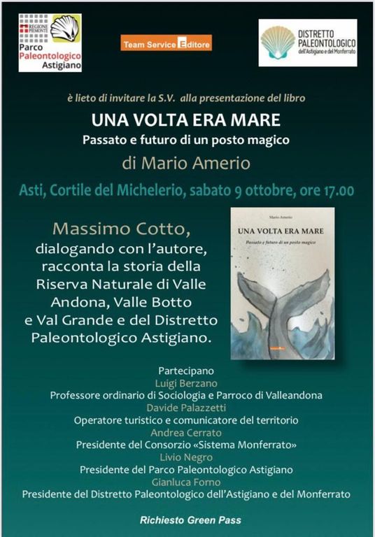 Sabato 9 ottobre alle 17 nel cortile di palazzo Michelerio ad Asti si terrà la presentazione del libro di Mario Amerio, "Una volta era il mare. Passato e futuro di un posto magico". Dialogherà con l'autore Massimo Cotto.