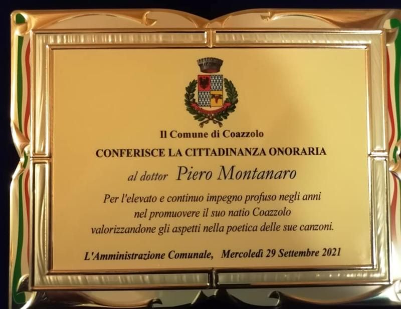 La scelta dell’Amministrazione comunale di conferire al cantautore la cittadinanza onoraria trova giustificazione “per l’elevato e continuo impegno profuso negli anni nel promuovere il suo natio Coazzolo valorizzandone gli aspetti nella poetica delle sue canzoni”.