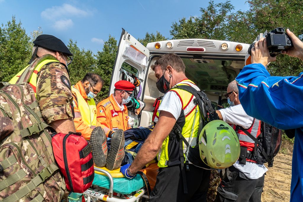 Al ritrovamento del disperso, il personale sanitario ha provveduto alla sua stabilizzazione e al successivo trasporto in ambulanza.