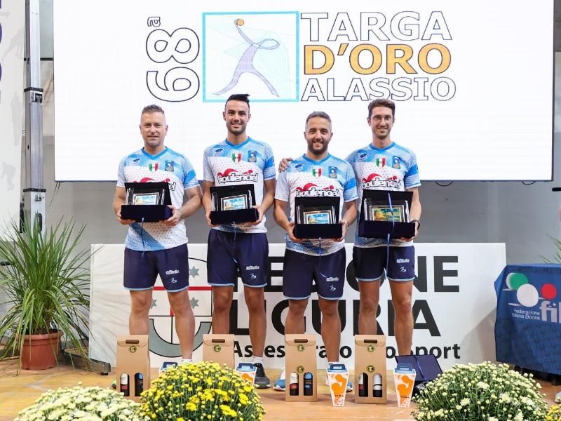 A consegnare i vari riconoscimenti sono stati il vicesindaco di Alassio, Angelo Galtieri, il presidente di Gesco, Igor Colombi, i rappresentanti della Federazione Internazionale Henry Escallier e Andrè Milano, il presidente di Federbocce Liguria, Andrea Dagnino, il presidente del Colba, Carlo Bresciano, e il presidente dell’Alassina, Ezio Sardo.