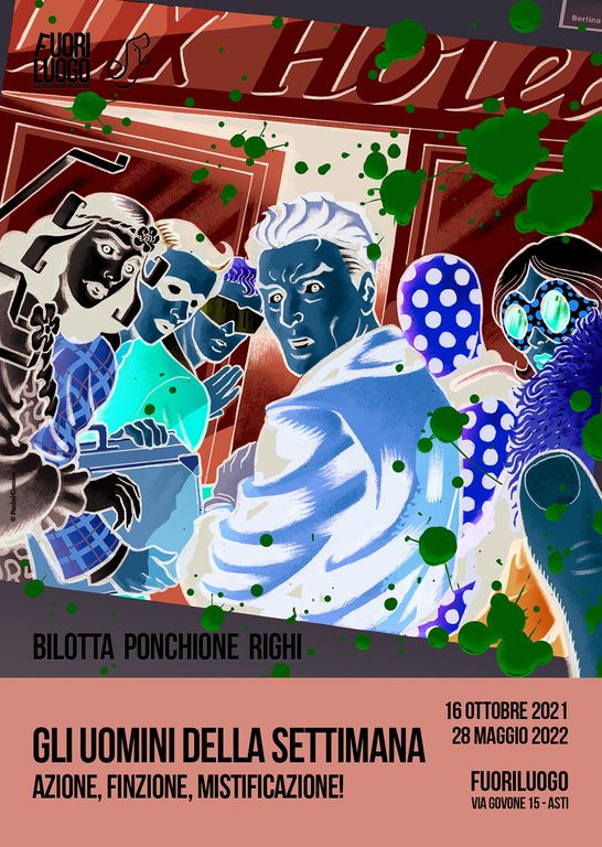 Nasce cosi “Gli uomini della settimana”, curata direttamente da uno dei fondatori di Fuoriluogo, Federico Sacchi, e lo stesso Sergio Ponchione: il titolo della mostra riprende il nuovo lavoro a cui è dedicata, uscito lo scorso 24 giugno edito da Panini Comics e realizzato insieme al noto autore Alessandro Bilotta, permettendo allo spettatore di scoprire più da vicino le fasi di realizzazione di una graphic novel.