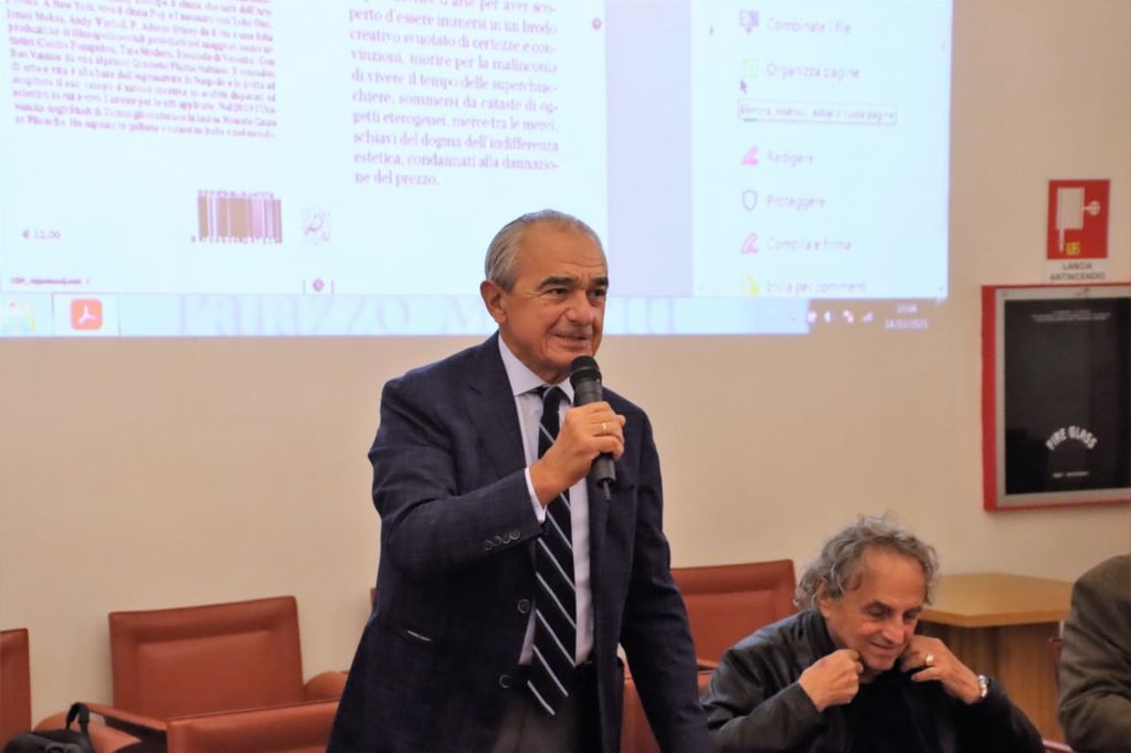 A presentare l’incontro è stato Francesco Poli, già professore di Storia dell'arte contemporanea dell'Accademia di Belle Arti di Brera, alla Sorbona e all'Università di Torino, critico d'arte per La Stampa e Il manifesto, specializzato nell'arte del XX secolo.