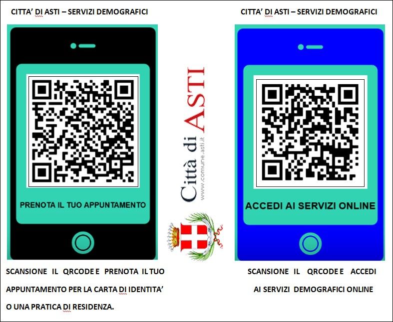 Inquadrando i QR code sottostanti tramite uno smartphone si potrà velocizzare l’accesso ai servizi di Anagrafe.