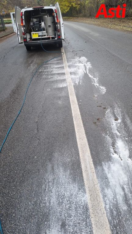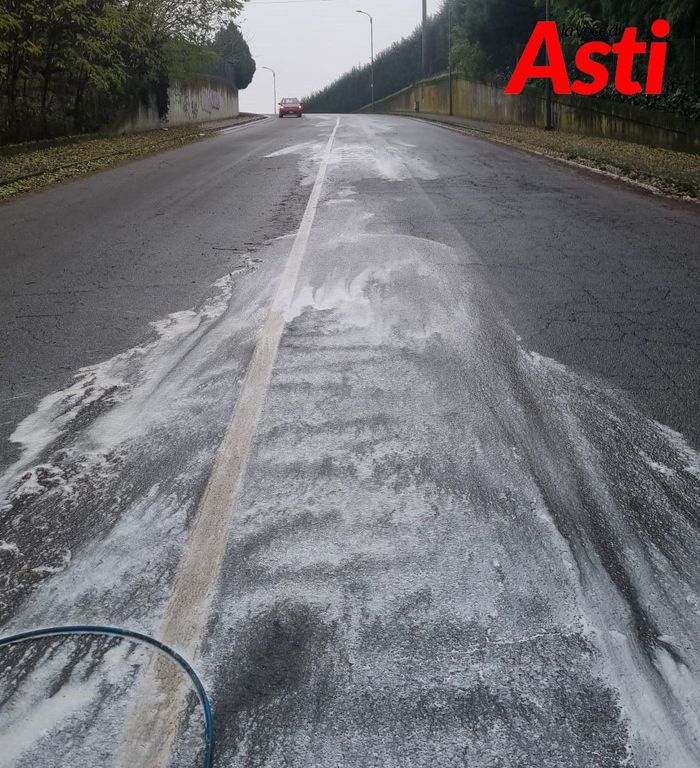 Camion perde olio idraulico in via Spandre e si dà alla fuga