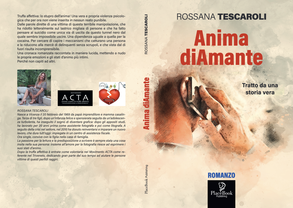 Si tratta di un sofisticato raggiro, che facendo leva su affetti, sentimenti e amore riesce a mietere vittime ovunque, soprattutto donne, che, secondo l’Osservatorio ACTA sono ben il 93%. Dietro a queste frodi informatiche e reati contro la buona fede c’è una nascosta criminalità organizzata altamente specializzata che , adeguandosi ai tempi del “digitale”, ne ha fatto uno dei suoi businness preferiti perché sovente si resta impuniti. Verrà presentata la pubblicazione del libro autobiografico “Anima diAmante” scritto da Rossana Tescaroli, referente ACTA per il Triveneto che spiega passo dopo passo la manipolazione da lei subita durante una cyber- truffa affettiva. E’ un libro molto intrigante ma anche un saggio che può essere adottato per corsi di formazione perché fa comprendere quali sono le conseguenze devastanti della dipendenza affettiva molto simili a quelle per la cocaina.