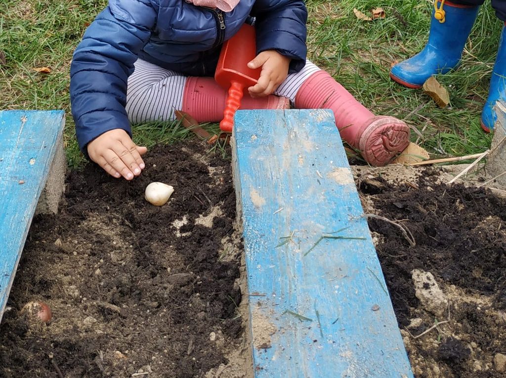 Le piantine sono state spunto per molte attività educative, volte a stimolare i 5 sensi: i bimbi hanno gustato le dolci fragoline, annusato la menta, il basilico e la salvia; immerso le mani nella terra e nel fango, visto crescere dal seme le piante del pomodoro e della zucca, sentito lo sfrigolio delle foglie secche in autunno. A rendere speciale il nostro progetto è stato l’arrivo di un piccolo melo: donato da una famiglia, è stato piantato e curato con dedizione dai bambini