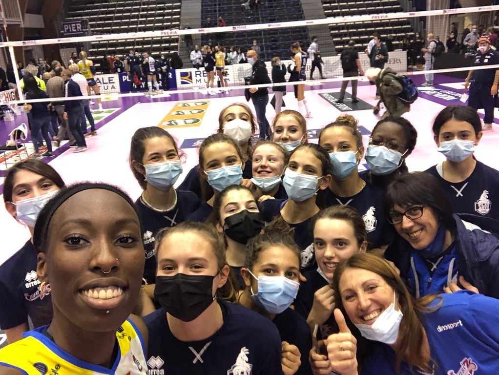 Oltre alle sei atlete U18 che quest’anno sono protagoniste anche nel campionato nazionale di Serie B2 con una squadra giovanissima, anche tutte le altre atlete del progetto Club76 hanno occasione di entrare al PalaFenera per vedere da vicino le campionesse della Serie A. A turno, infatti, i gruppi biancoblu effettuano il servizio campo nelle giornate casalinghe del Chieri’76, fin qui vincitore di tre delle quattro partite disputate tra le mura amiche.