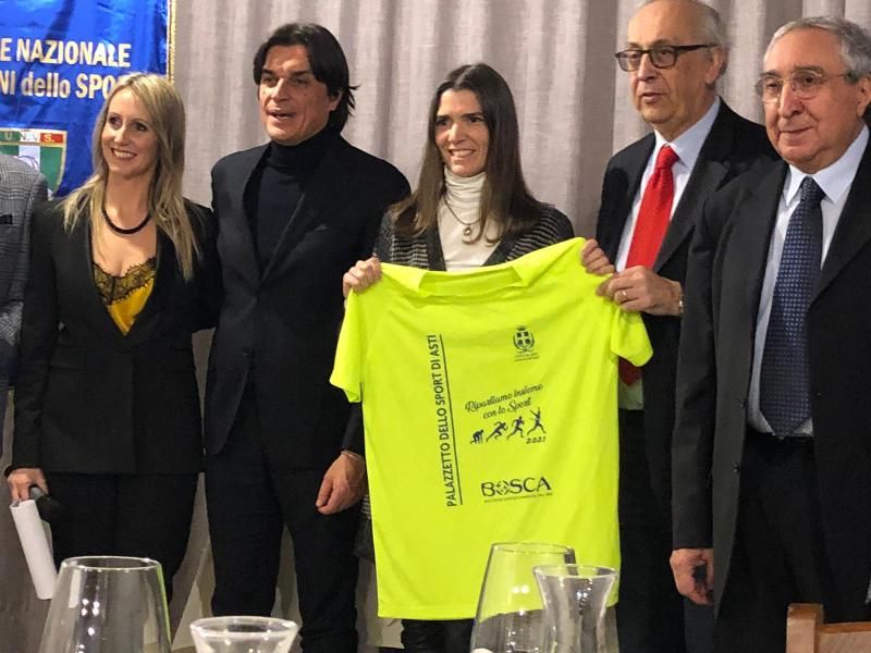 In esordio di serata il premio nella sezione “Sport e Lavoro” è stato consegnato Polina Bosca in rappresentanza della nota azienda produttrice di spumanti BOSCA S.p.A. L’azienda in accordo con il Comune di Asti ha reso possibile un miglioramento qualitativo del palazzetto dello Sport ribattezzato Palabosca. Promotore dell’iniziativa l’assessore Mario Bovino che nell’occasione ha provveduto a distribuire a tutti a presenti una maglietta celebrativa.