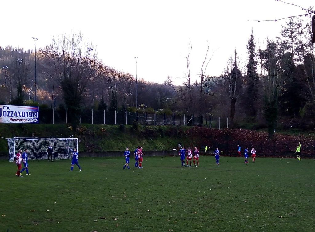I due gol del match giungono nel primo tempo, lasciando al secondo più di una occasione per il possibile vantaggio dell’’undici di mister Cristian Rossi. Moncalvo che comunque era andato sotto con un penalty fischiato per un fallo di Godino e trasformato dal Fbc Ozzano 1919 Ronzonese (19’). Pronta la reazione in una gara giocata senza risparmiarsi. Al 43’ il difensore Carlo Godino si fa perdonare ed il suo tiro dall’interno dell’area vale il pareggio.