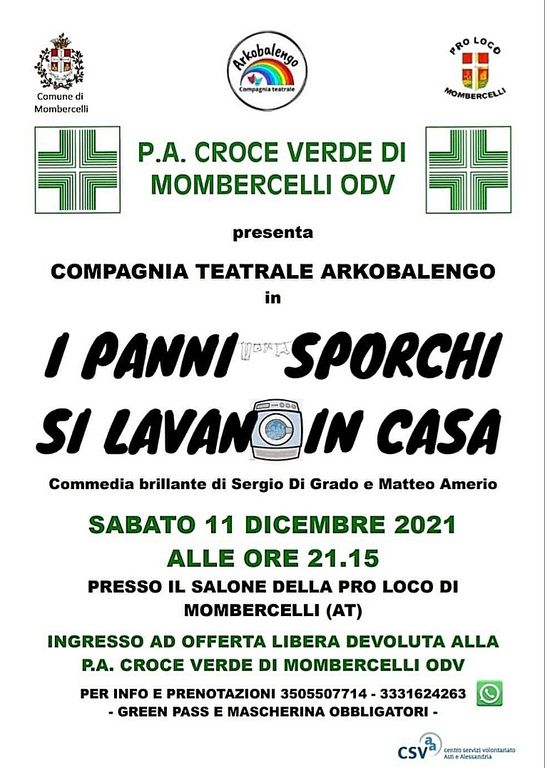 Sabato 11 dicembre alle 21 15, presso la Pro Loco di Mombercelli, andrà in scena la commedia in due atti “I panni sporchi si lavano in casa “ di Sergio Di Grado e Matteo Amerio.
