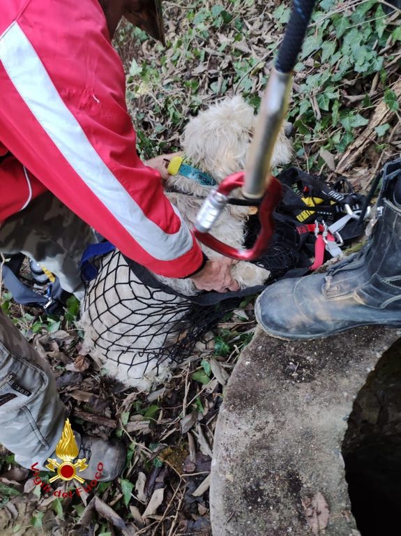Montechiaro, cane caduto in un pozzo profondo 20 metri salvato dai vigili del fuoco