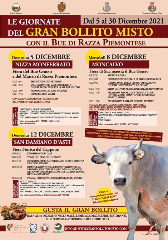 Ospiti di domenica anche alcune galline bionde di Villanova (con due allevatori). Ci saranno anche esposizioni di manzi a cura di due allevatori sandamianesi. A seguire pesa del cappone. Ci saranno premi dedicati. Sarà proposto, infine, di istituire un albo degli allevatori di cappone e di bue. Alle 12.30 pranzo del cappone al Foro Boario realizzato dalla Pro Loco. Prenotazioni ancora aperte.Costo: 28 euro.