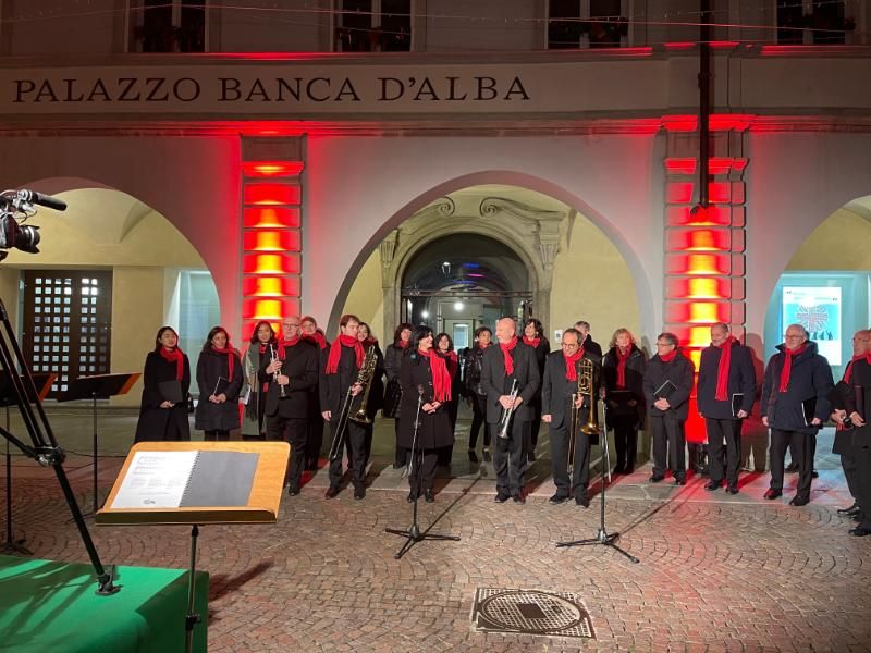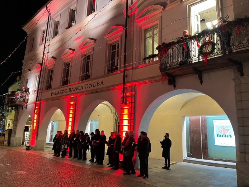 Martedì 7 dicembre, all’imbrunire, il Palazzo Banca d’Alba si è trasformato in un teatro di luci con una esibizione musicale di coro e strumentisti.