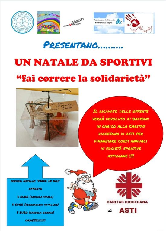 Educatori e ragazzi con disabilità intellettivo-relazionale del Progetto Junior, Associazione Sindrome X-Fragile Piemonte e Centro Diurno Santo Spirito, forti della convinzione che il lavoro fa inclusione, hanno sviluppato una raccolta fondi natalizia, battezzata “Un Natale da Sportivi – fai correre la solidarietà". Nell’ambito della quale hanno dedicato tempo, competenze e capacità alla creazione di gadget natalizi finalizzati ad una raccolta fondi a scopo sociale.