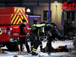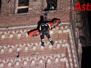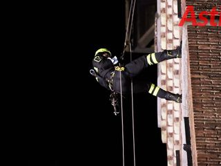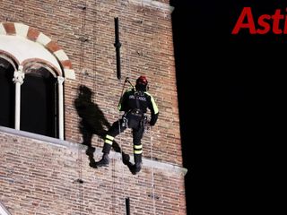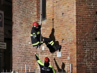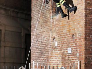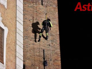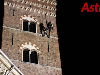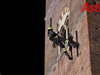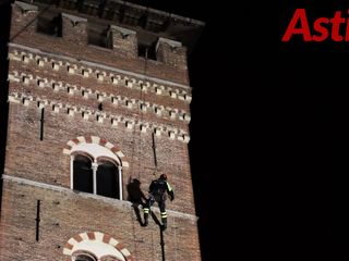 Vigili del fuoco scalano la bellissima Torre Troyana.
