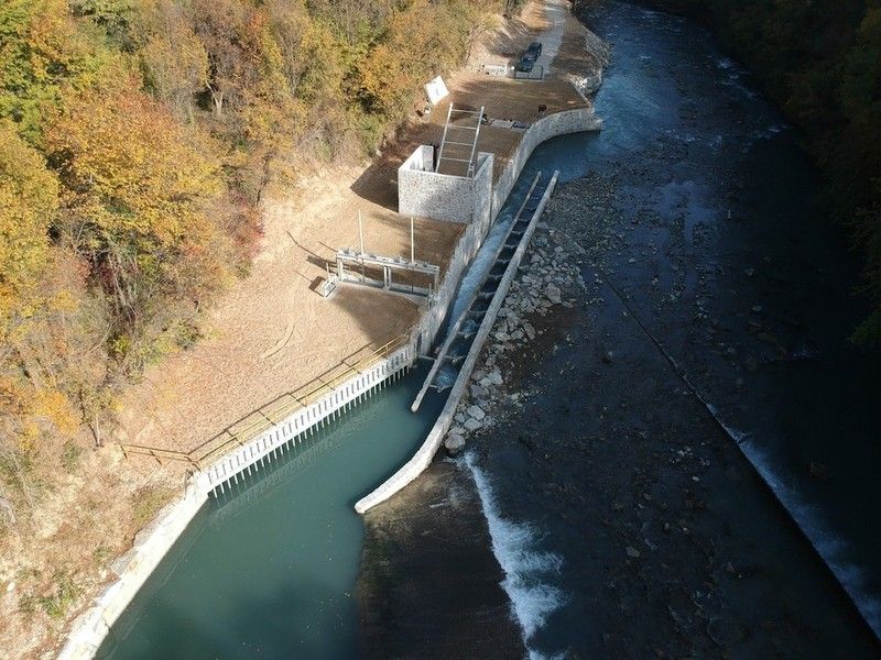 I primi interventi per la realizzazione dell’impianto idroelettrico sul Fiume Dora Riparia sono cominciati a settembre 2020. L’Impianto è stato ultimato a Ottobre 2021 ed è caratterizzato dall’essere completamente interrato, eccezion fatta per il locale di copertura dello sgrigliatore. La scelta progettuale di interrare le opere consente di ridurre al minimo l’impatto visivo e, al contempo, in caso di piene eccezionali della Dora Riparia, riduce l’esposizione delle stesse all’azione dell’acqua.